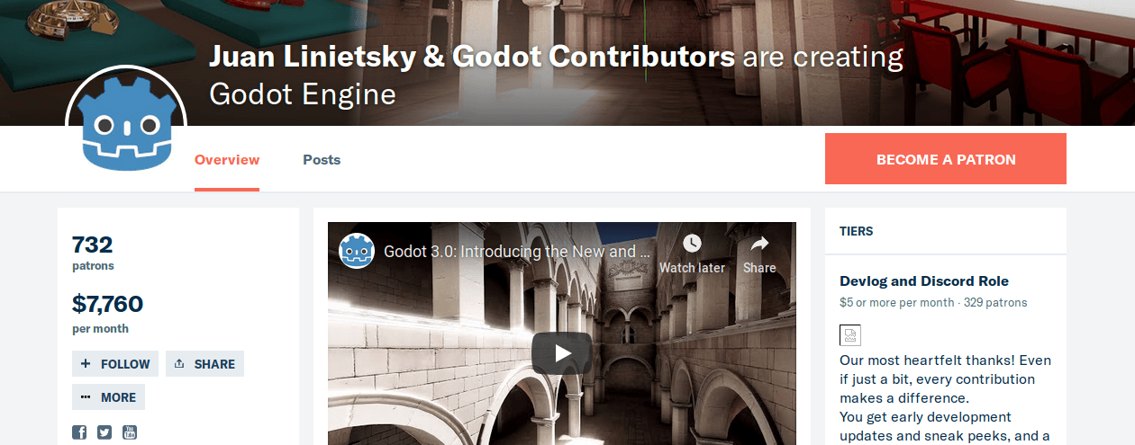 Hoy en día esta cobrando fuerza que los proyectos relacionados con Software Libre ofrezcan recompensas por ayudarlos con una cantidad de dinero cada mes. De esta forma podemos ofrecer algo mejor según la cantidad de apoyo que recibamos de nuestros usuarios. Todo gestionado desde una plataforma como Patreon.